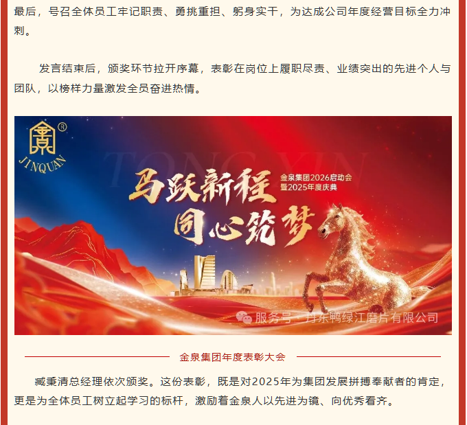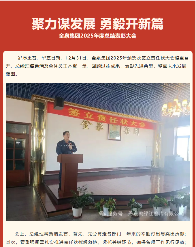 鸭绿江磨片:聚力谋发展 勇毅开新篇--颁奖及签立责任状大会 丹东鸭绿江磨片有限公司